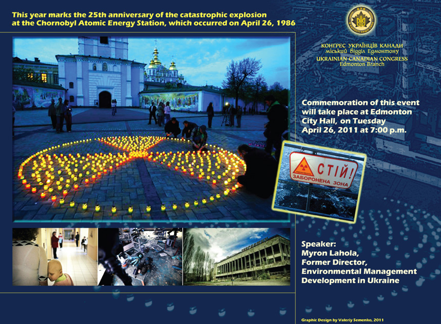 If you cannot attend, you can listen a live broadcast of the Chornobyl commemorative event at Edmonton City Hall on Tuesday, April 26th at 101.7 World FM Radio, www.worldfm.ca