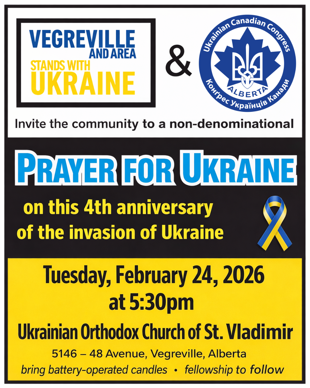 A non-denominational, community Prayer for Ukraine on the 4th anniversary of the invasion of Ukraine.