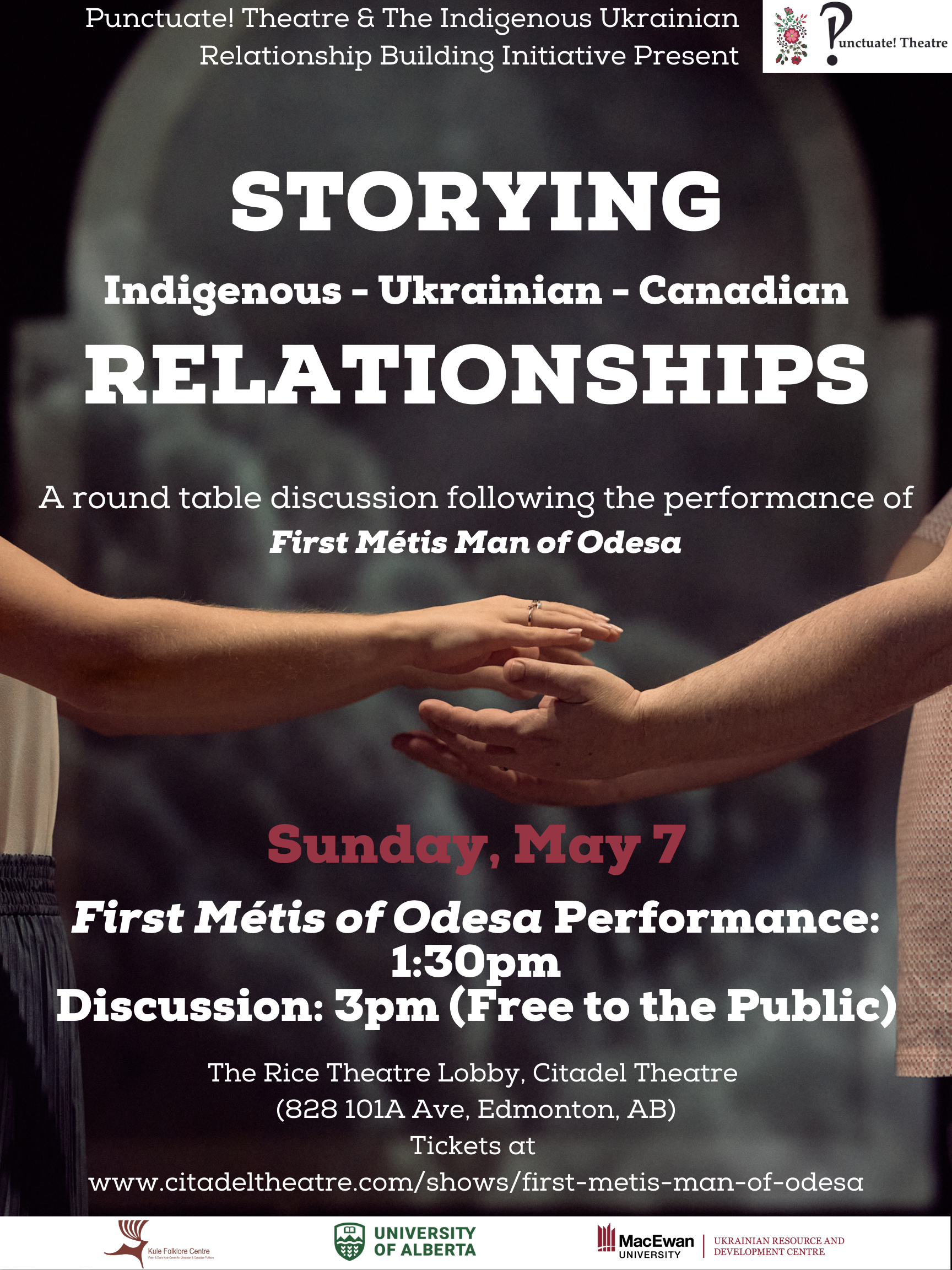 The event is organized by the Ukrainian Resource and Development Centre, MacEwan University, and the Kule Folklore Centre, University of Alberta, within the Indigenous Ukrainian Relationship Building Initiative, together with Punctuate! Theatre.