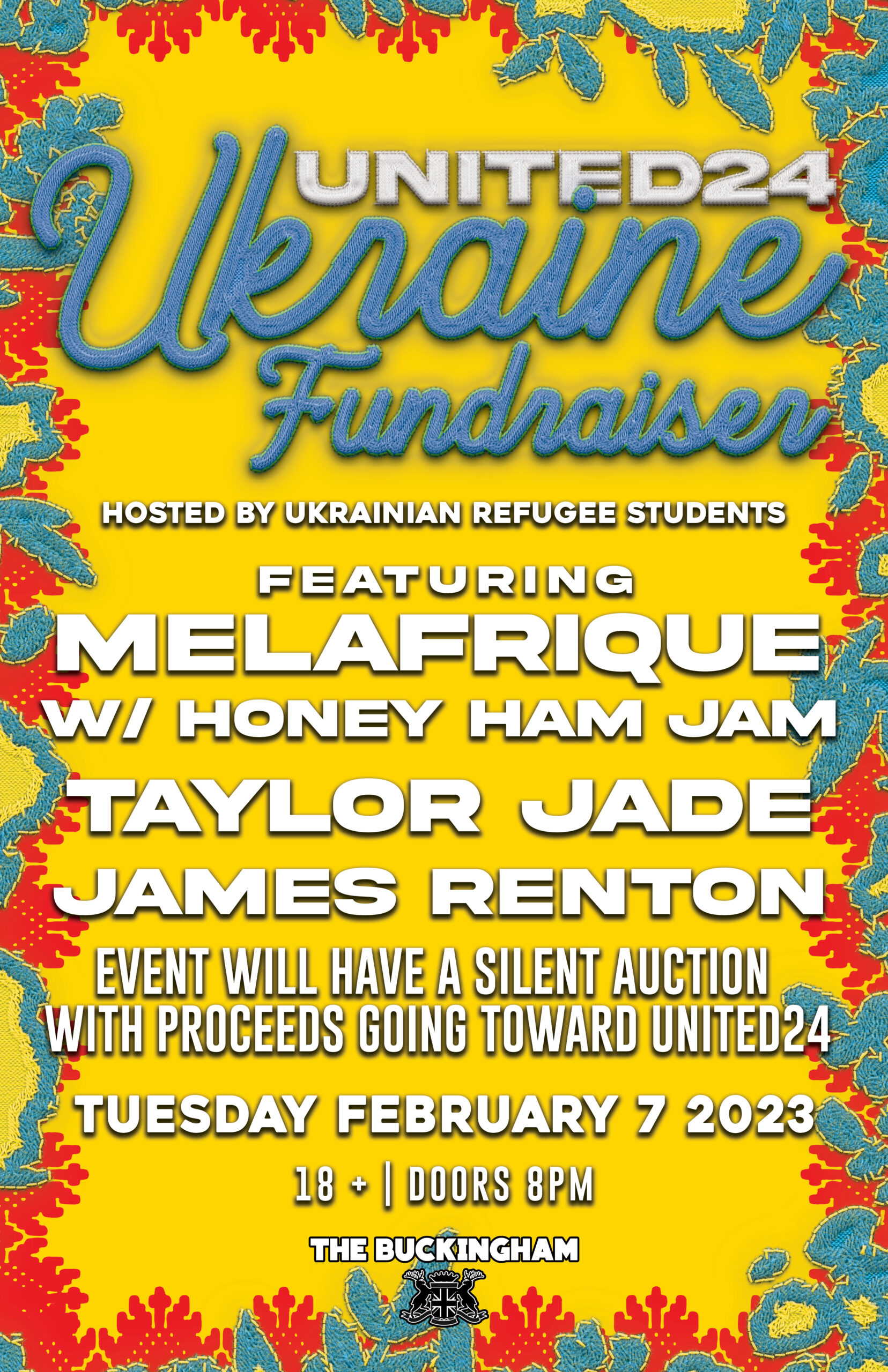 This United24 Ukraine Fundraiser is hosted by Ukrainian refugee students. The evening will include a silent auction with proceeds going toward United24.