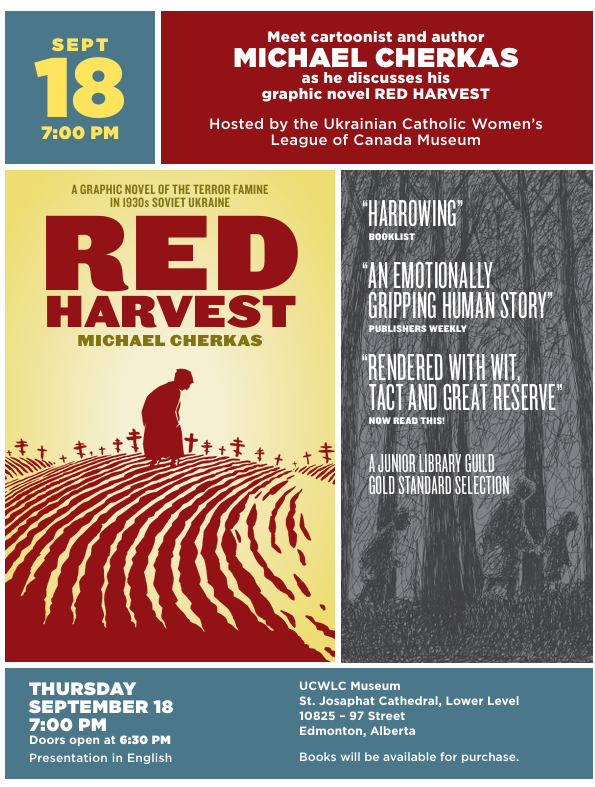 Book Presentation – RED HARVEST / Презентація книги – RED HARVEST Join us for a special evening at the UCWLC Museum as we welcome Michael Cherkas, author and illustrator of… Continue reading Book Presentation – RED HARVEST / Презентація книги – RED HARVEST