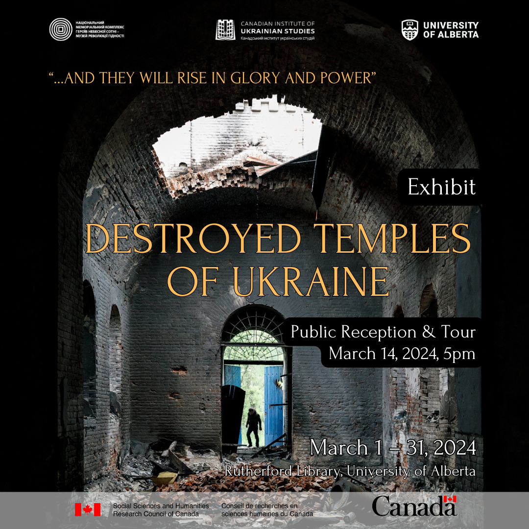 14 March, 2024 5-6:30 P.M. MT Rutherford Library, University of Alberta 11208 89 Ave NW, Edmonton Join Maidan Museum (Kyiv) Director Ihor Poshyvailo for the reception of the "...And They Will Rise in Glory and Power": Destroyed Temples of Ukraine photo exhibit, currently on display in the galleria of the University of Alberta's Rutherford Library.… Continue reading Destroyed Temples Exhibit – Reception & Tour