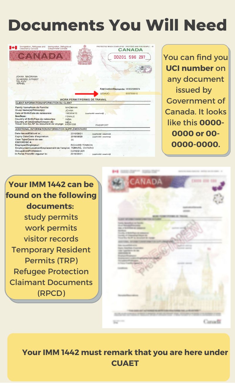 – Your IMM 1442 must include a remark that you’re here under CUAET