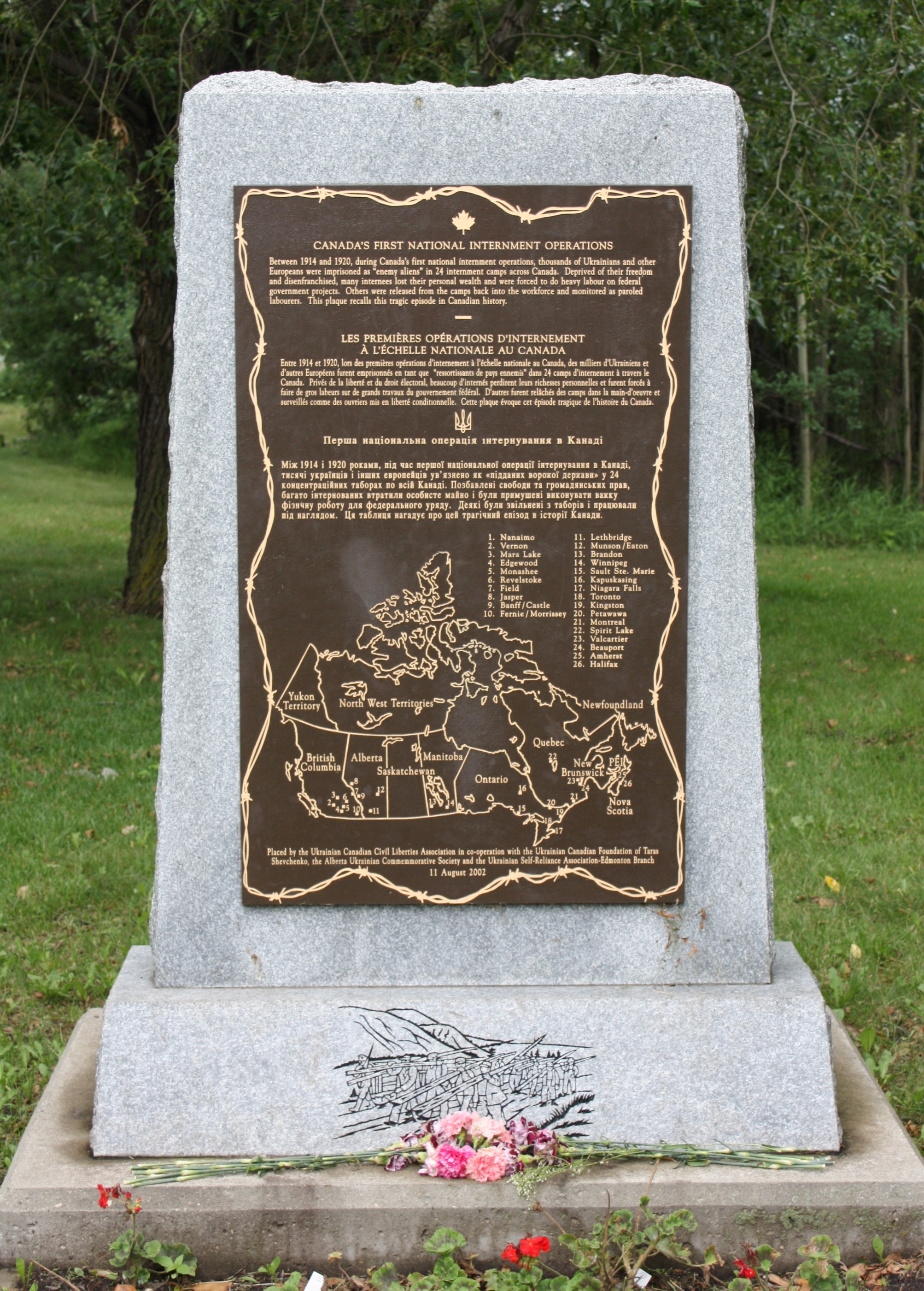 The Ukrainian Cultural Heritage Village is the site of the only internment camp monument in Northern Alberta (on the photo). Installed on August 11, 2002, the plaque commemorates this tragic episode in Canadian history.