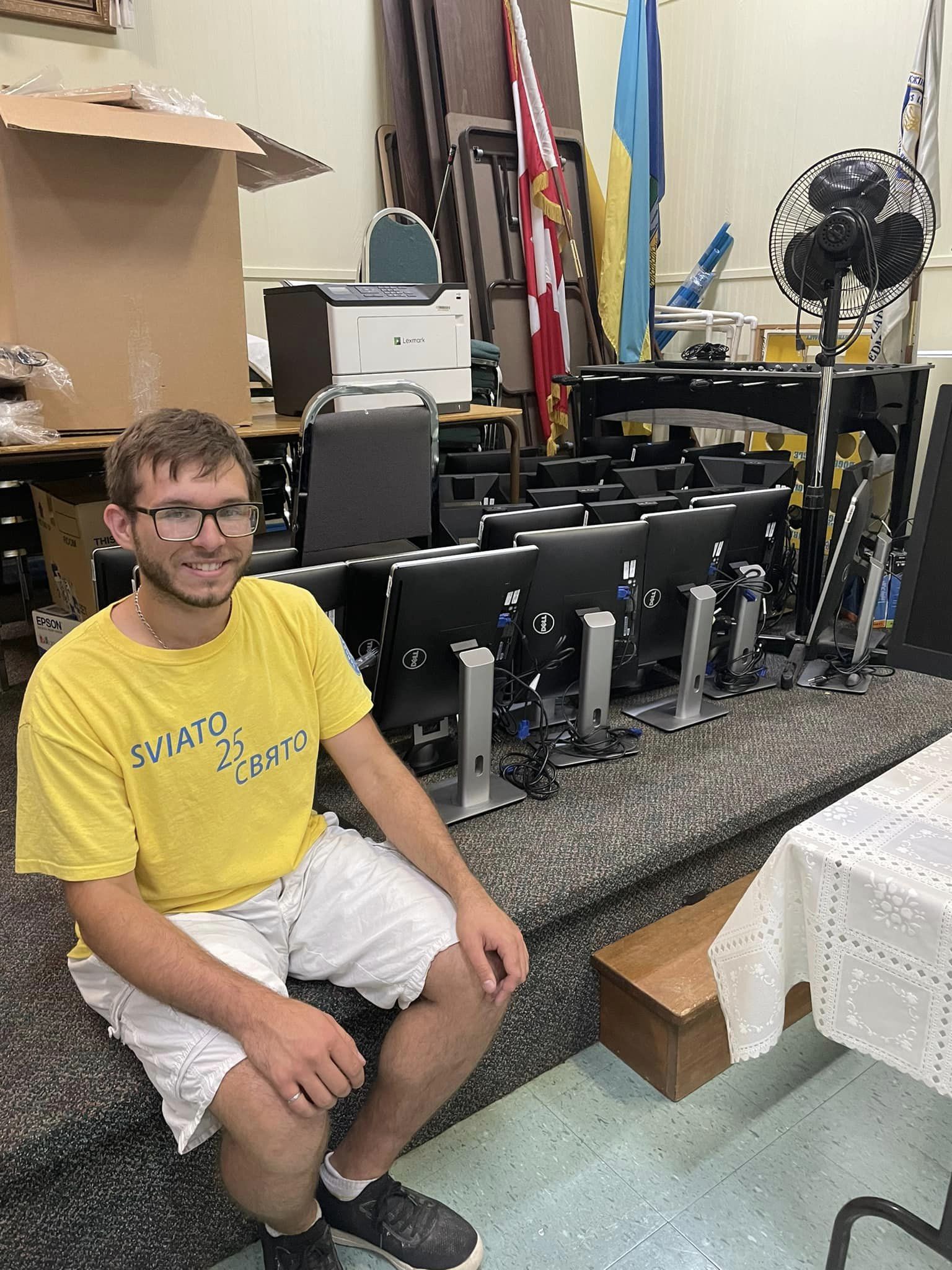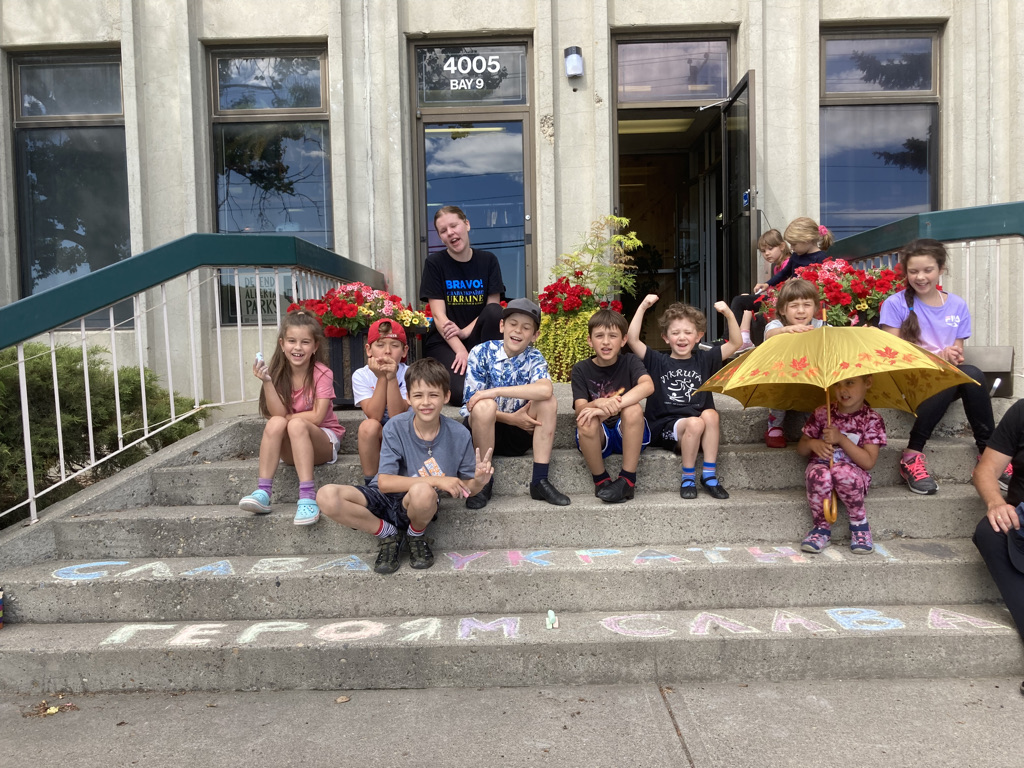 Back row (L-R): Mrs. Marie Stelmach, summer student Amy Yaremcio (covered), UCC-APC President Daria Luciw.
