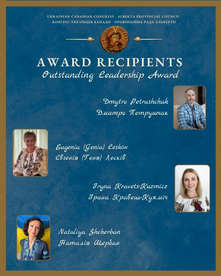 Гетьманська Нагорода за лідерство вшановує осіб (віком від 30 років), які є прикладом виняткового лідерства, відданості та вагомого внеску в українсько-канадську спільноту в Альберті. Ця престижна відзнака відзначає тих, хто не лише очолював прикладом, а й надихав, об’єднував та сприяв суттєвим змінам у громадських організаціях та ініціативах.