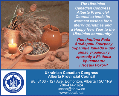 “Christmas on January 7 is a centuries old tradition based on the Julian Calendar that is celebrated by not only Ukrainians – the second largest nation following the Calendar – but also many other nations who belong to Orthodox and Eastern rite churches. This tradition plays a very important role in spiritual and cultural lives of Ukrainians around the world, often referred as “Ukrainian Christmas,” states Daria Luciw, President of the Ukrainian Canadian Congress – Alberta Provincial Council. We ready ourselves for Christmas with much ritual, planning the traditional twelve Lenten dishes for Sviata Vecherya (the Christmas Eve Supper) – symbolizing of the twelve Apostles who gathered at the Last Supper. Caroling from home to home, decorating and preparing homes for Christmas celebrations and attending church services are just some traditions followed between now and the Feast of Jordan on January 19. “On behalf of the UCC APC Board, I extend our heartfelt greetings to all Ukrainian Canadians in Alberta and all communities who are celebrating one of the most significant of Christian holy days – the birth Jesus,” wishes Luciw. “Christmas is time to appreciate the many blessings we enjoy and cherish, including our loving families, our sense of Ukrainian community and our Christian faith.”